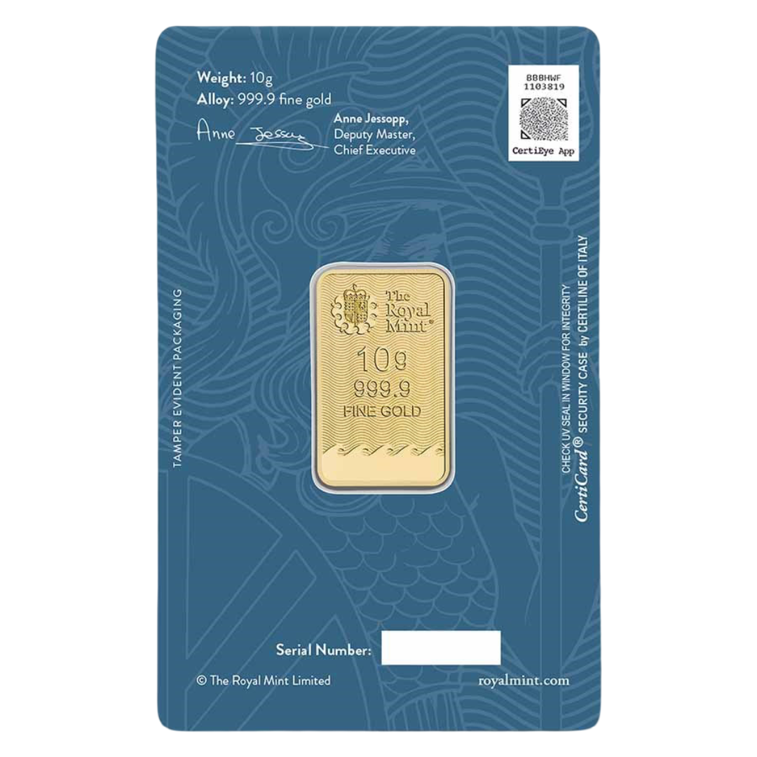 Add the 10 g Royal Mint Britannia Gold Bar to your portfolio today — a timeless symbol of strength, heritage, and enduring value.