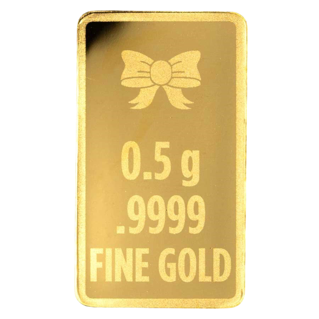 - ✓ Contains 1/2 gram (.01607 oz) of .9999 fine gold