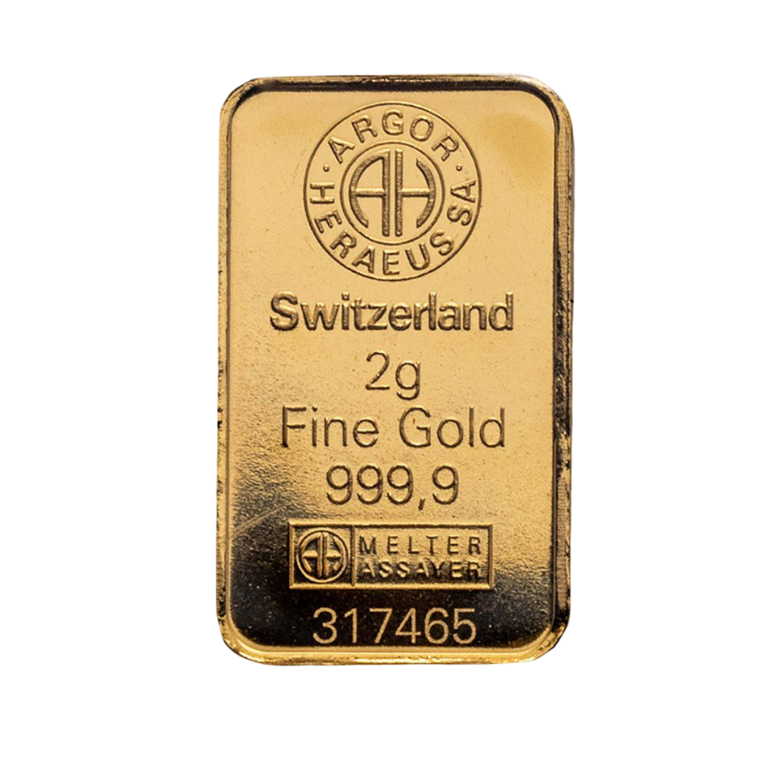 2 g Gold Bar – Argor-Heraeus (In Assay)