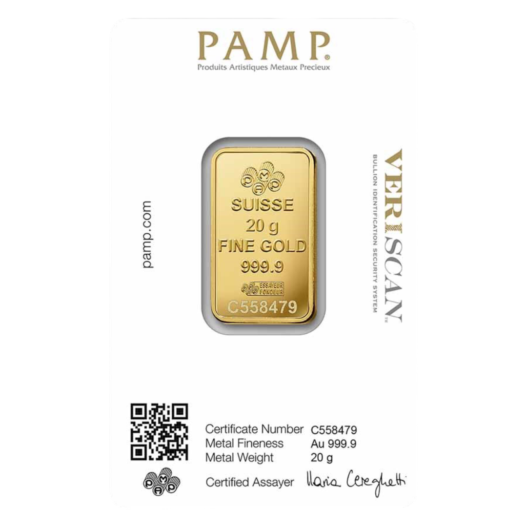 All MintBuilder PAMP Suisse gold bars are guaranteed for weight and purity. Each bar includes VERISCAN™ authentication to ensure genuine Swiss quality and secure ownership verification.