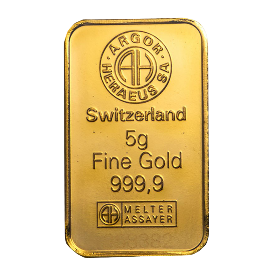 Own Swiss excellence in pure gold—add the 5 g Argor-Heraeus Gold Bar to your collection or investment portfolio today.