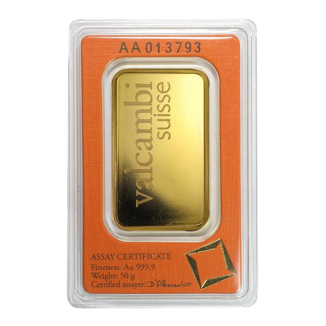 50 g Gold Bar – Valcambi Suisse (In Assay)