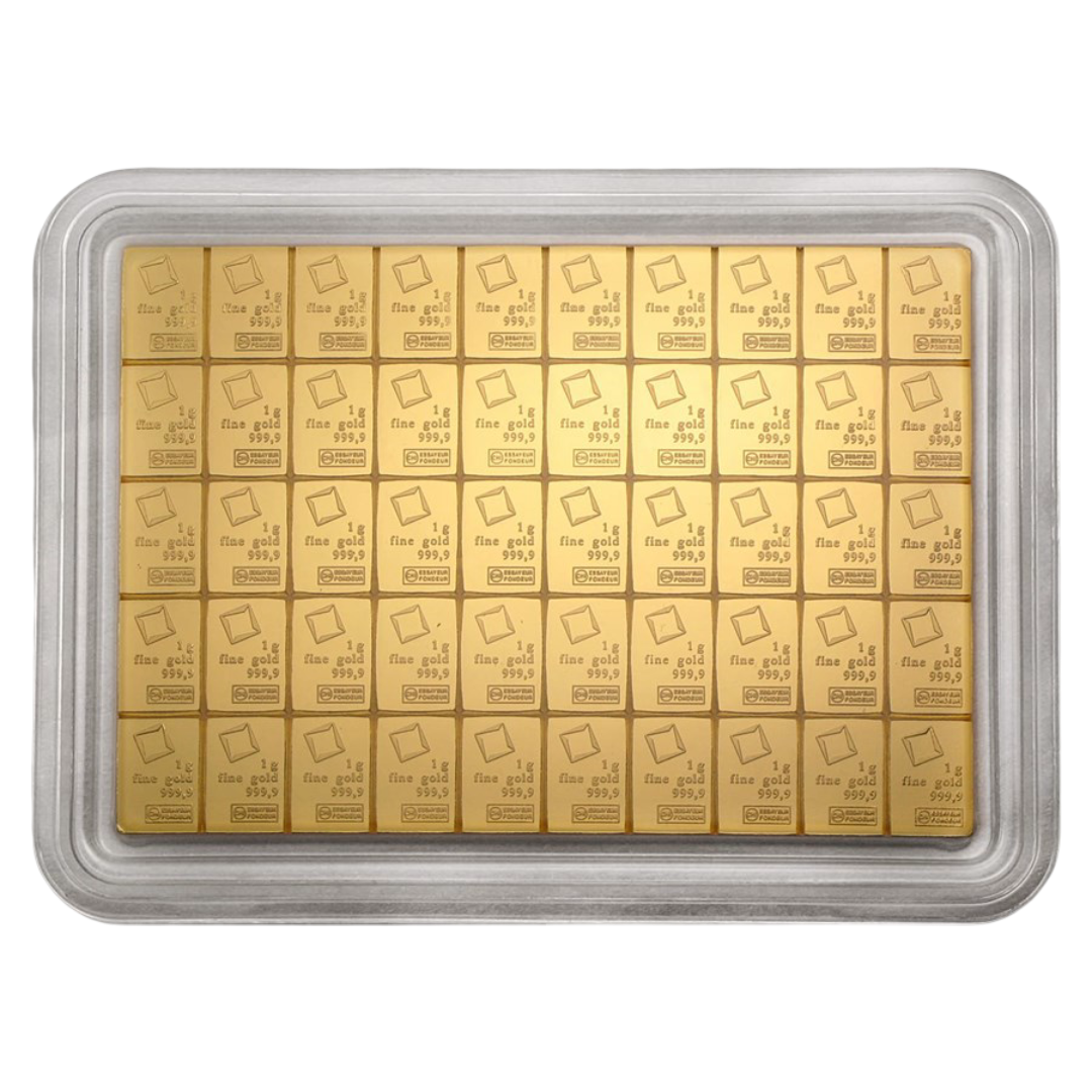 Designed for flexibility and global recognition, this 50×1 g CombiBar™ is a smart, elegant way to hold fractional gold that can be divided without compromising value or authenticity.