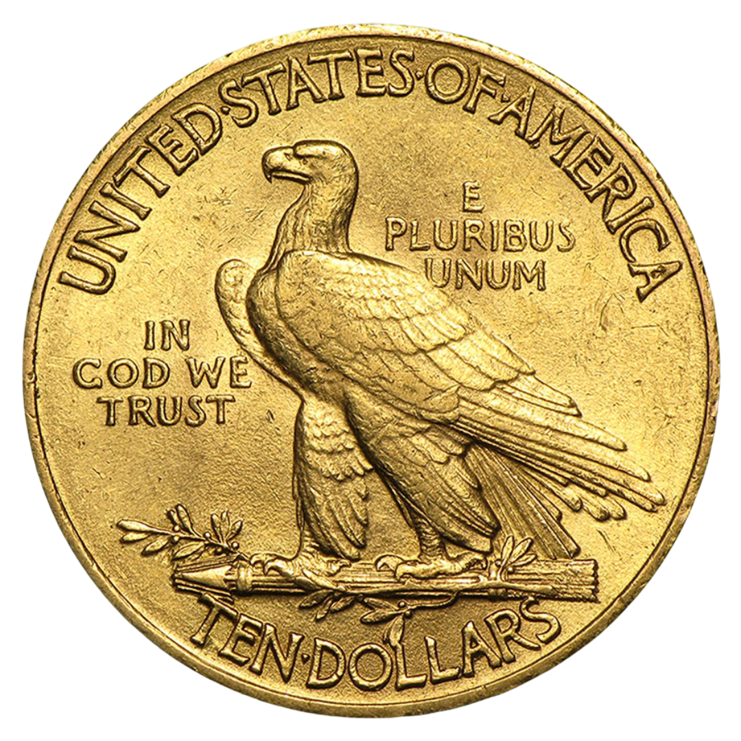 The $10 Indian Gold Eagle stands as one of the most artistically celebrated coins ever struck by the United States Mint. Designed by the legendary Augustus Saint-Gaudens and issued from 1907 to 1933, this gold coin remains an enduring symbol of America’s early 20th-century renaissance in coinage design. Each coin contains .4838 troy ounces of gold with a fineness of .900.