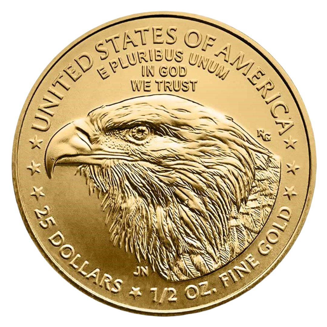 The 1/2 oz American Gold Eagle BU (Random Year) is a timeless blend of artistry and investment security. Each coin contains one-half troy ounce of .9167 fine gold and bears the U.S. government’s guarantee of weight and purity. Introduced in 1986, the American Gold Eagle series remains the nation’s premier gold bullion coin, trusted by collectors and investors worldwide.