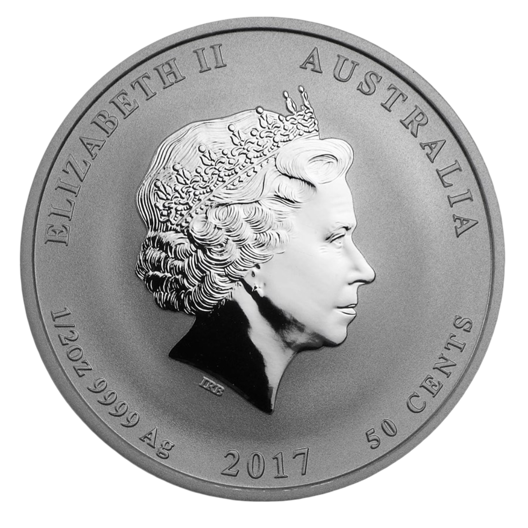 Each coin contains 1/2 troy ounce of .9999 fine silver and comes encased in a Perth Mint protective capsule. The obverse features the Ian Rank-Broadley effigy of Queen Elizabeth II along with inscriptions for the weight, purity, denomination and year.